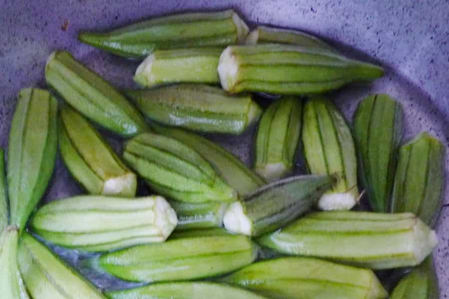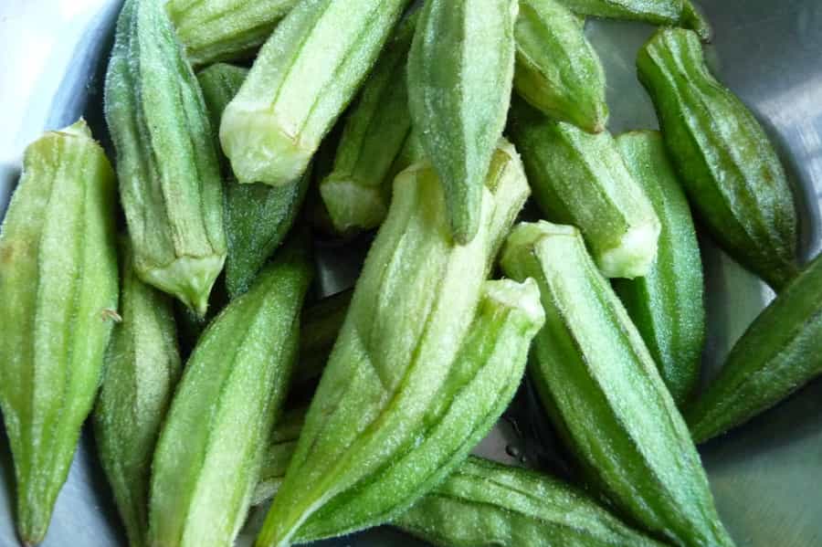 Las bamias, también llamadas okras o kingombó, son una verdura que se encuentra fresca durante febrero y marzo. En Santiago puedes encontrarlas en la Vega Central, en los locales donde venden los insumos para rellenitos árabes. Se puede congelar en bolsas ziploc si se quiere conservar para el invierno.