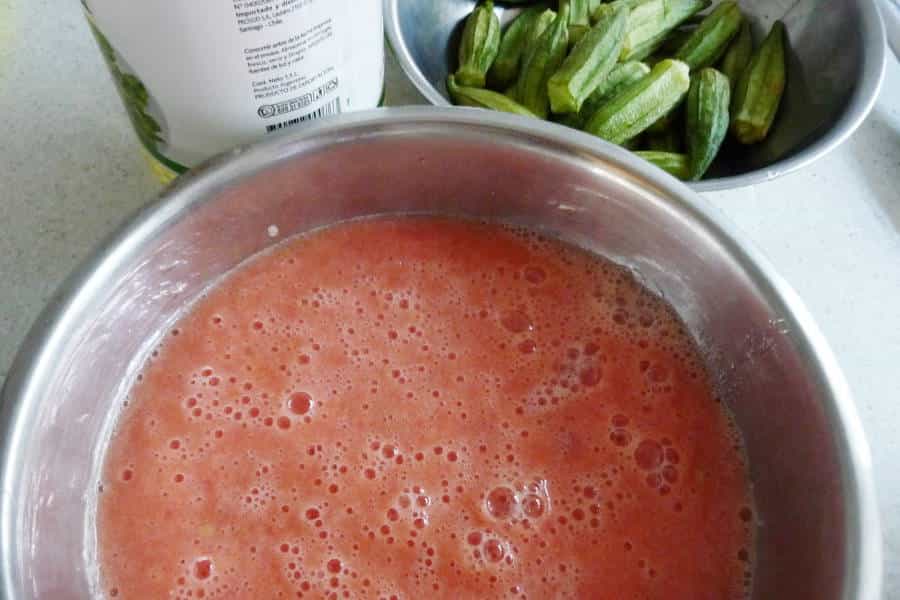 Finalmente, agrega las bamias ya sofritas y lleva a hervir sin tapar la olla por 10 a 15 minutos. Corrige sazón y agrega una cucharada de jugo de limón.