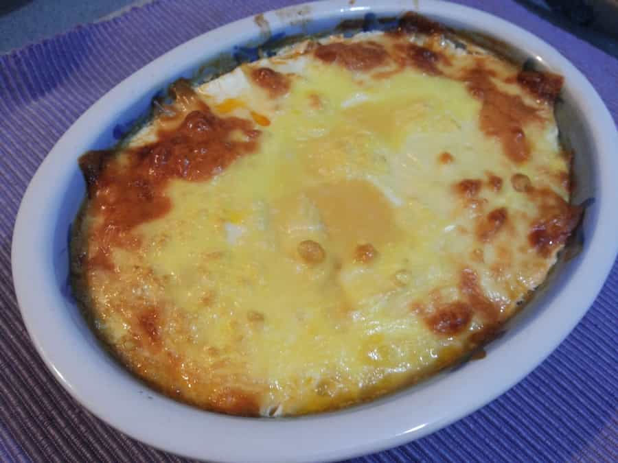 Mete al horno por 20 minutos a 180°, hasta que cuaje bien el huevo y se dore.