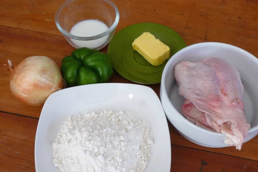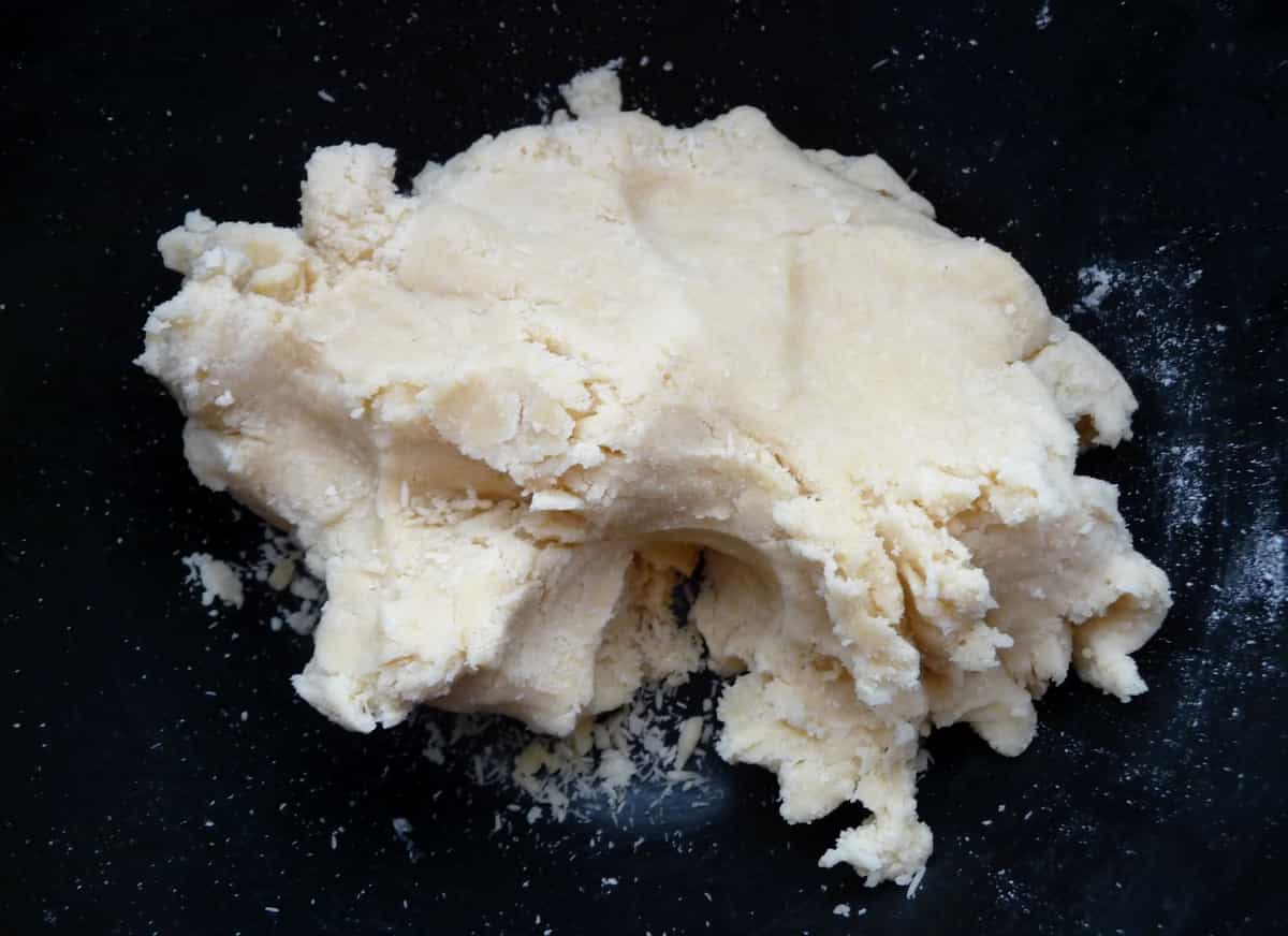 Para la masa, pon la harina en un bol y corta la mantequilla en trozos muy pequeños para mezclar utilizando tus dedos (esto es lo que se llama cernizcar), hasta que tengas una “arena gruesa” de mantequilla y harina. Luego agregar leche hasta lograr una textura moldeable.