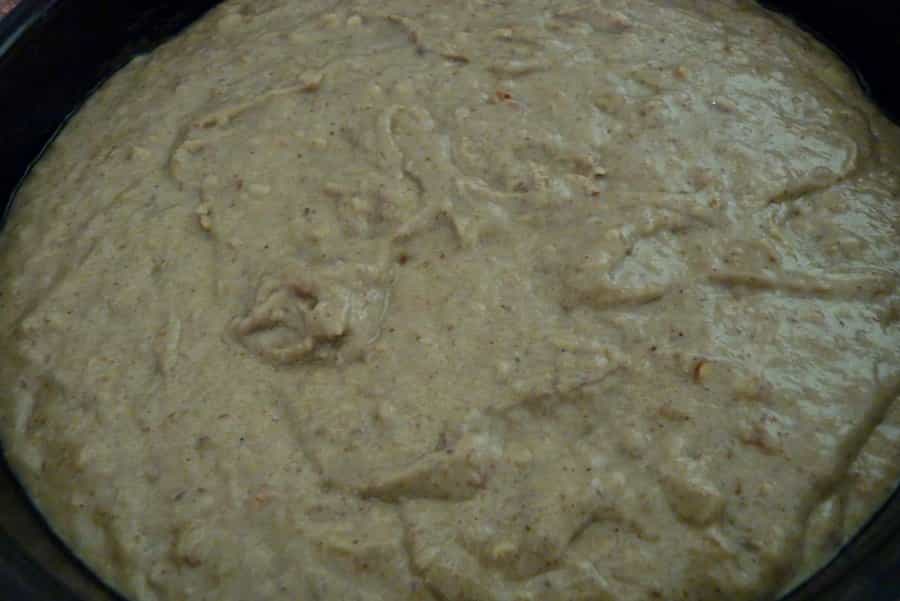Añade la harina y los polvos de hornear lentamente, mezclando con una batidora. La mezcla quedara espesa, si lo necesitas, puedes agregar 1/8 de taza de agua.