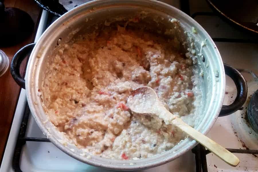 - Juntar esta preparación con la quínoa previamente colada en una olla, idealmente de greda