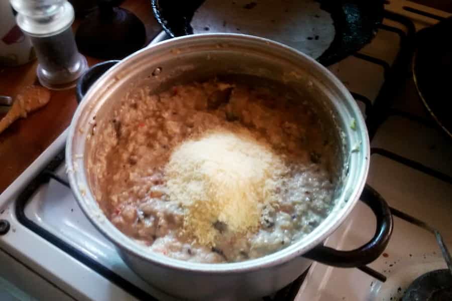- Servir en pocillos individuales de greda y agregarle encima a cada porción queso rallado reggianito
