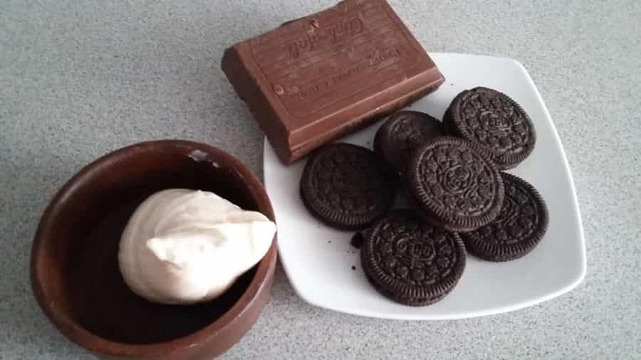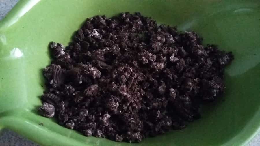 Machaca las galletas oreo hasta volverlas polvo lo más que puedas, se puede hacer con la ayuda de un mix o también con las manos.
