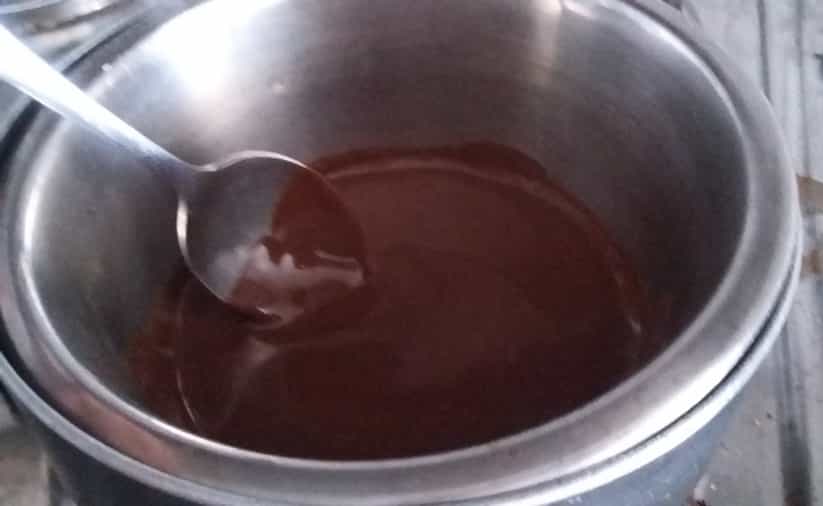 Pon a derretir el chocolate en baño de María y una vez que esté listo, retíralo del fuego para que no esté tan caliente.