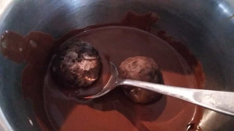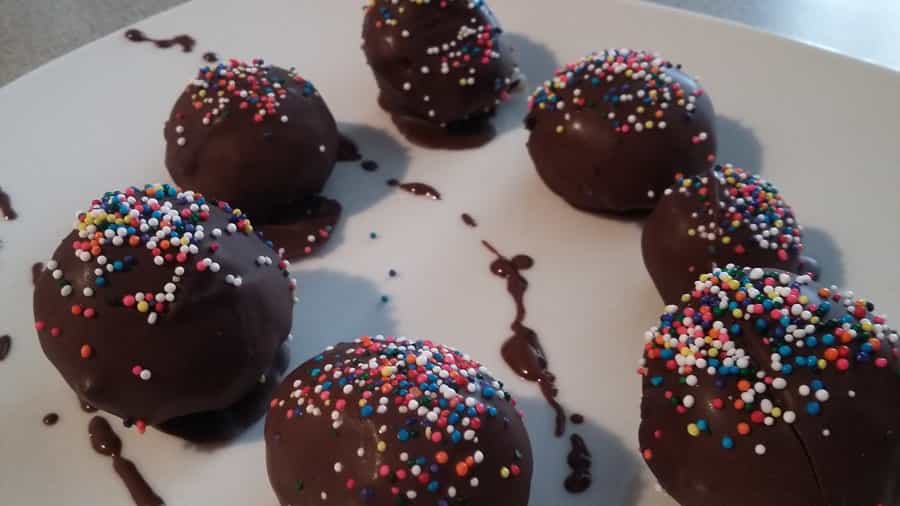 Saca las bolitas del refrigerador y báñalas con el chocolate, agrega las chispitas de colores o decora como más te guste.