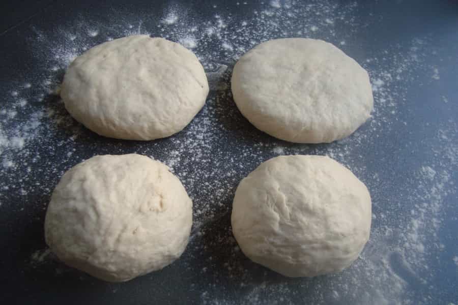 Pasado el tiempo de reposo, volver a amasar para desgasificar la masa. En una mesa enharinada estirar la masa y dividirla en 8 porciones. Formar bollos y dejarlos reposar por ½ hora tapados con un paño limpio.