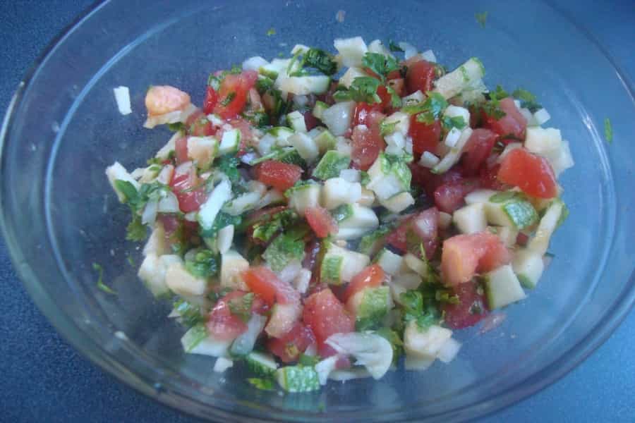 Este pebre de zapallo italiano es perfecto para acompañar carnes, papas, para condimentar alguna ensalada o para comer con galletas.