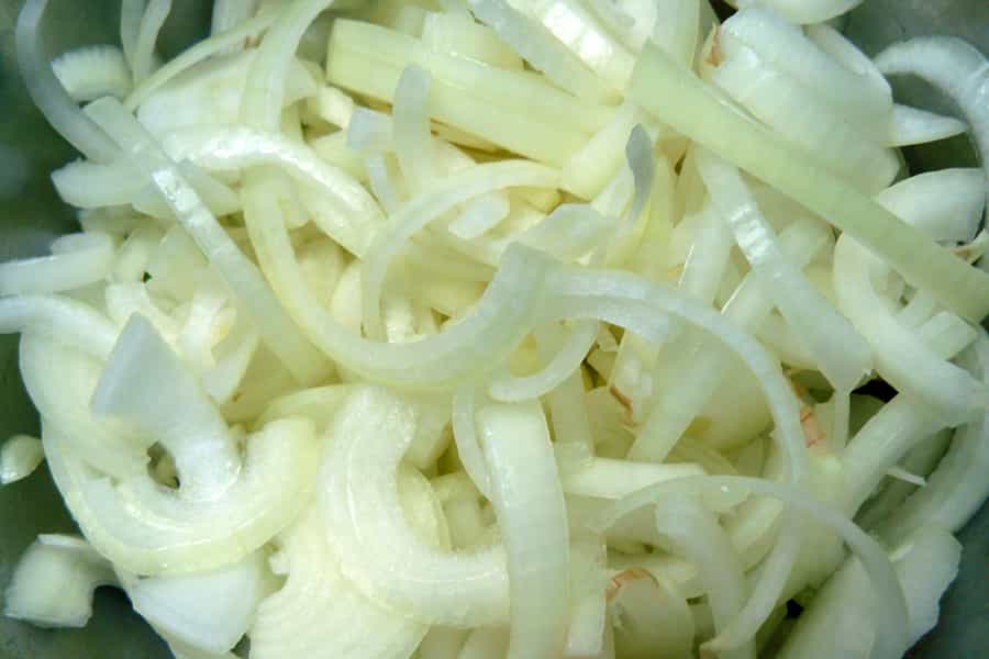 Colocar las cebollas cortadas en tiritas, en un sartén previamente calentado a fuego medio junto con el azúcar.
