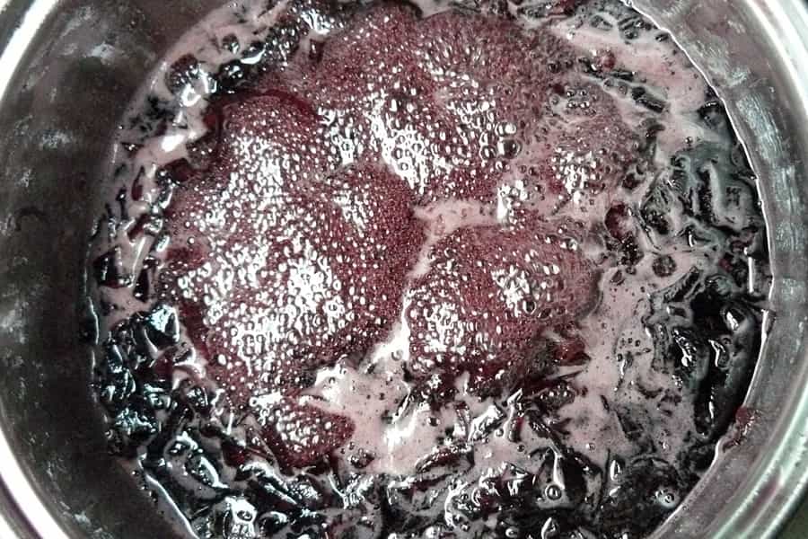 En esta etapa tenemos que dejar que el vino se reduzca. Nos daremos cuenta de esto porque la preparación poco a poco comenzará a tomar la consistencia de una mermelada.