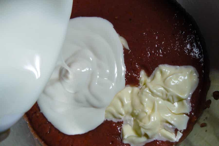 Luego añade la nata o el yogurt y la mayonesa y mézclalo suavemente con una cuchara.