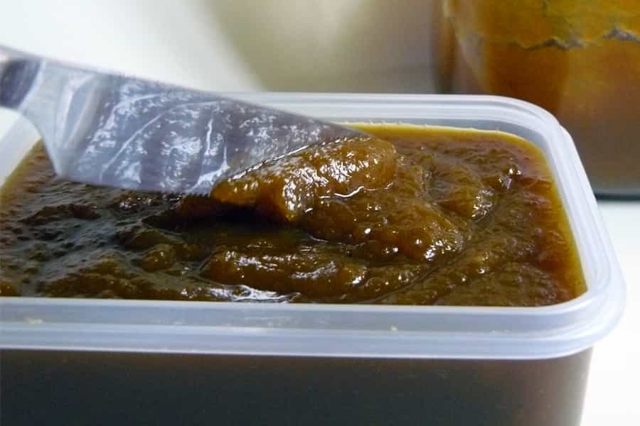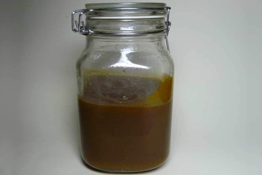 Una vez cocido, lo envasamos caliente en el contenedor, cerramos bien y lo dejamos enfriar.