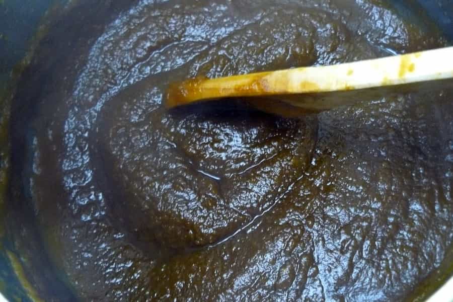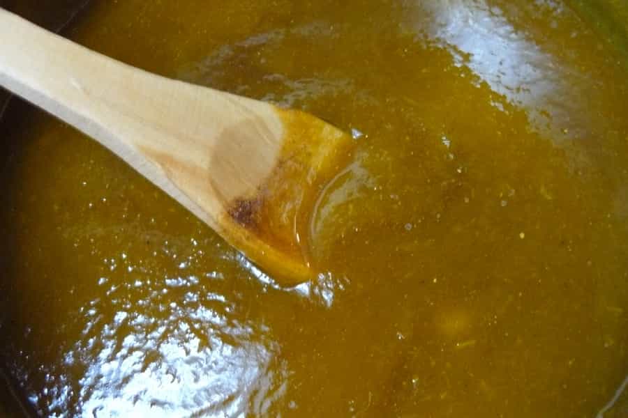 Colocamos la preparación dentro de una olla y agregamos el azúcar rubia, el extracto de vainilla, la canela, el jengibre y la nuez moscada.