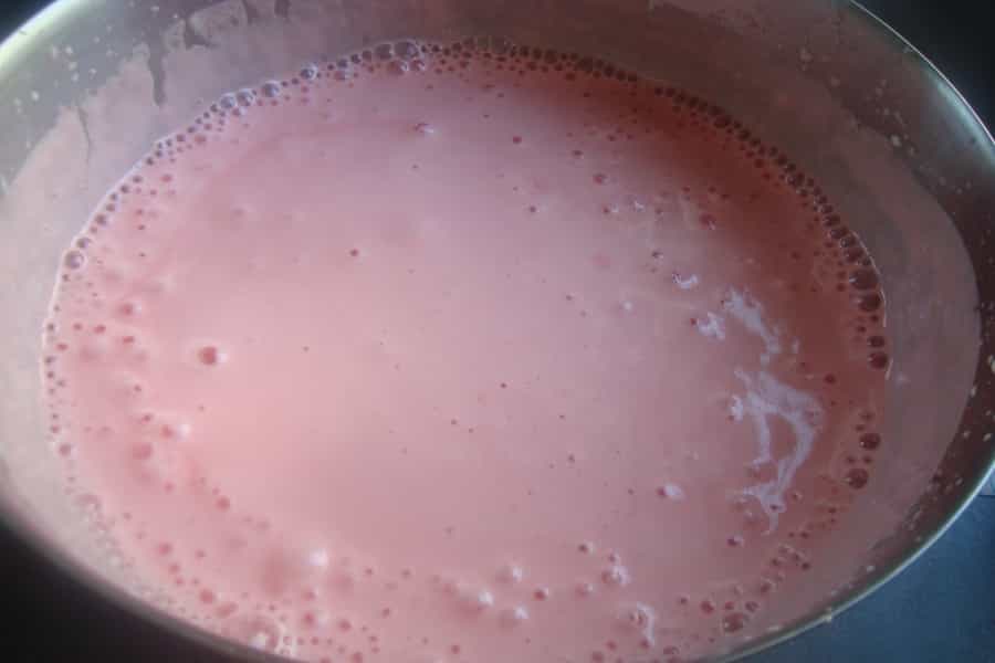 Agregar la gelatina tibia (no debe estar caliente) y 2 cucharadas de jugo de limón. Batir por 1 o 2 minutos, hasta conseguir una textura cremosa. Incorporar las frutillas y revolver suavemente con una cuchara de madera hasta integrar bien.