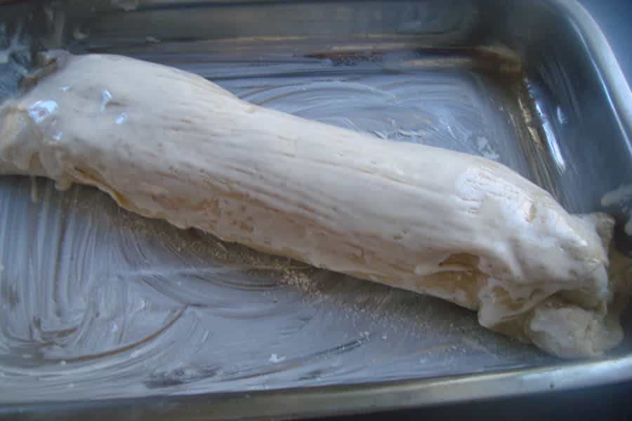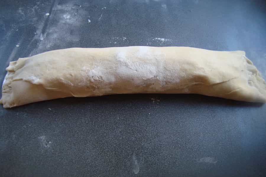 Enrollar e ir pincelando con margarina la parte interior de la masa.
