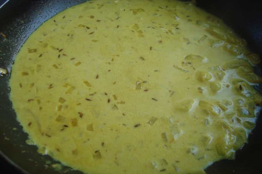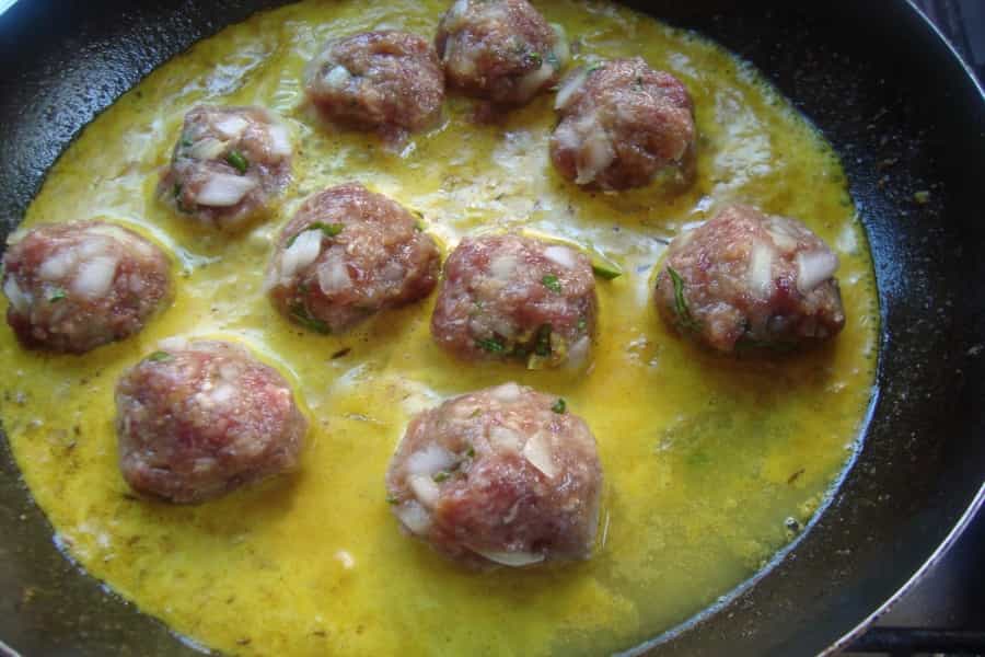 Humedecerse las manos y formar las bolitas de carne del tamaño deseado. Colocar las bolitas de carne en la salsa de curry y cocinarlas por 10 a 20 minutos dependiendo del tamaño. Por último incorporar la crema, mezclar suavemente y apagar.