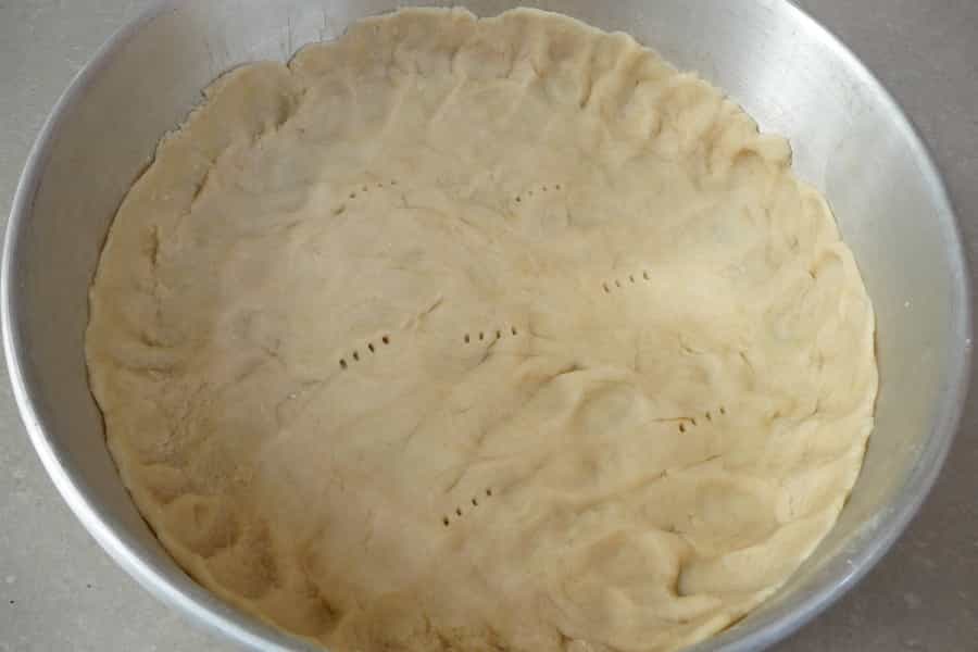 Para la masa, mezcla la harina con la mantequilla utilizando tus dedos (debes dejarla a temperatura ambiente unos minutos antes para que se ablande). Cernizca hasta obtener una especie de arenilla. Agrega media taza de leche o agua. Extiende la masa en tu molde, pínchala con un tenedor y guárdala por unos minutos en el refrigerador.