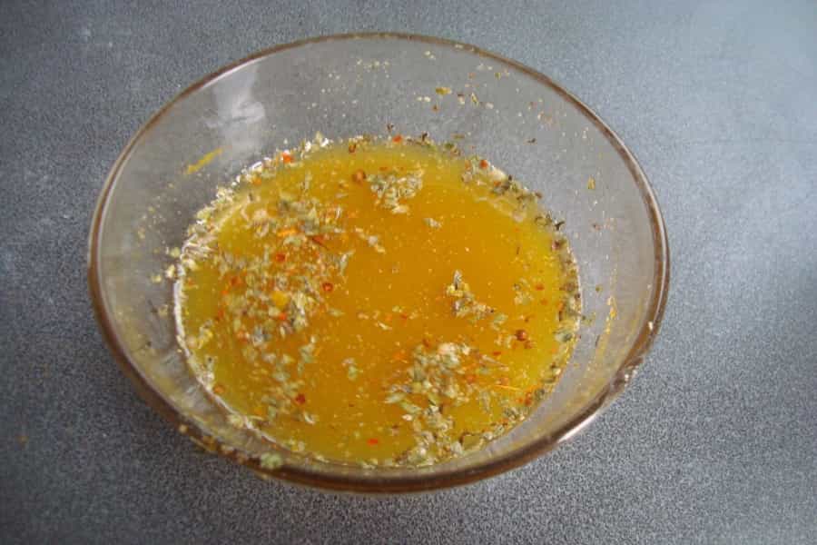 En un pocillo pequeño mezclar merquén, orégano, cúrcuma, agregar ¼ taza de agua, revolver hasta integrar bien y reservar.