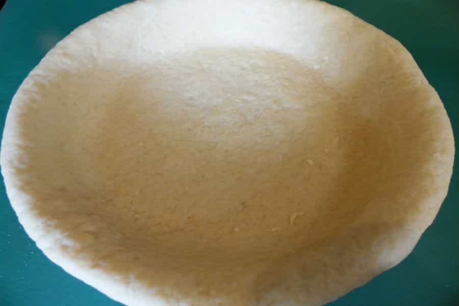 Luego sacamos nuestra masa del congelador y con un uslero le damos forma para ponerla sobre nuestro molde previamente enmantequillado. Debemos reservar una parte de esta para hacer las tiritas que cubren el relleno del Kuchen. Personalmente prefiero poner la masa al horno unos 10 minutos a fuego medio antes de ponerle el relleno.