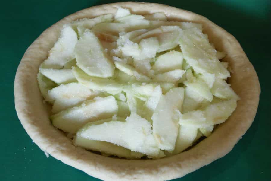 Luego tomamos nuestra masa y la rellenamos con las manzanas, previamente maceradas.