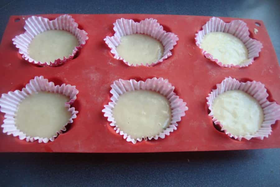 Verter la preparación en moldes de cupcakes, llenando hasta sus 3/4 partes.