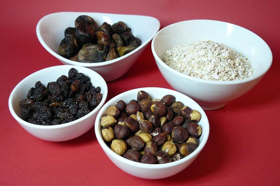 ·Mezclamos en un bol los higos, las pasas y las avellanas hasta que se incorporen bien los ingredientes.