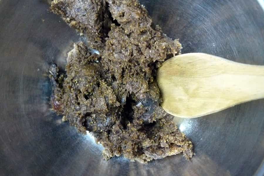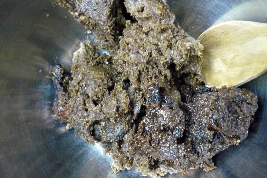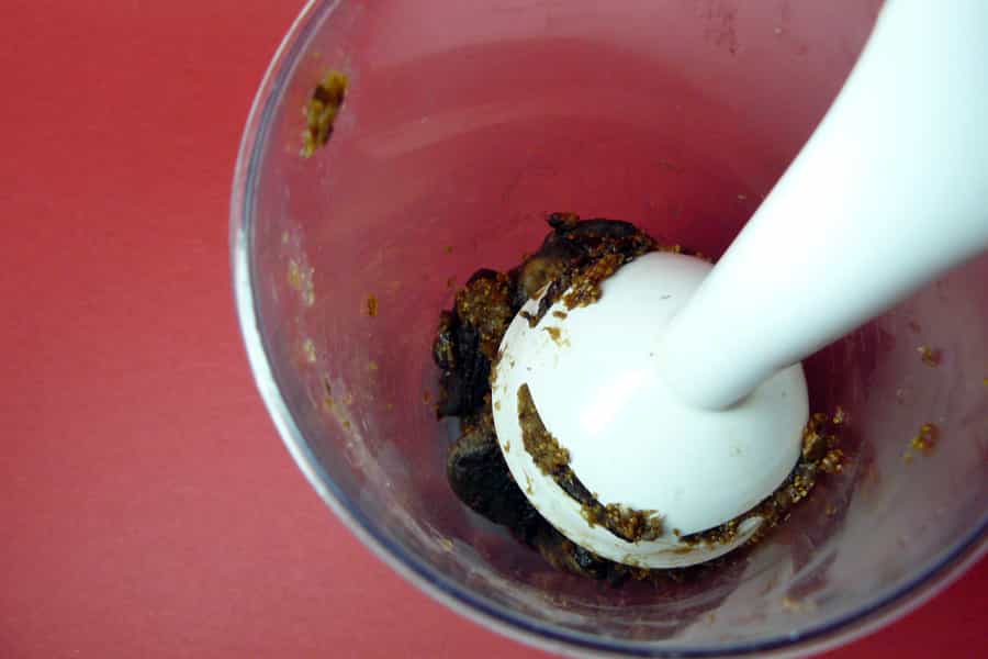 Primero molemos los higos con una minipimer o en una licuadora, hasta obtener una masa pegajosa. Y reservamos.