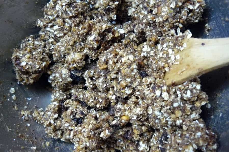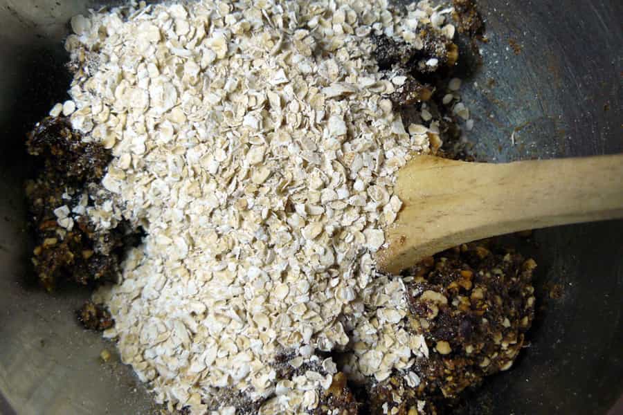 Finalmente agregamos los copos de avena y revolvemos hasta homogeneizar la masa.