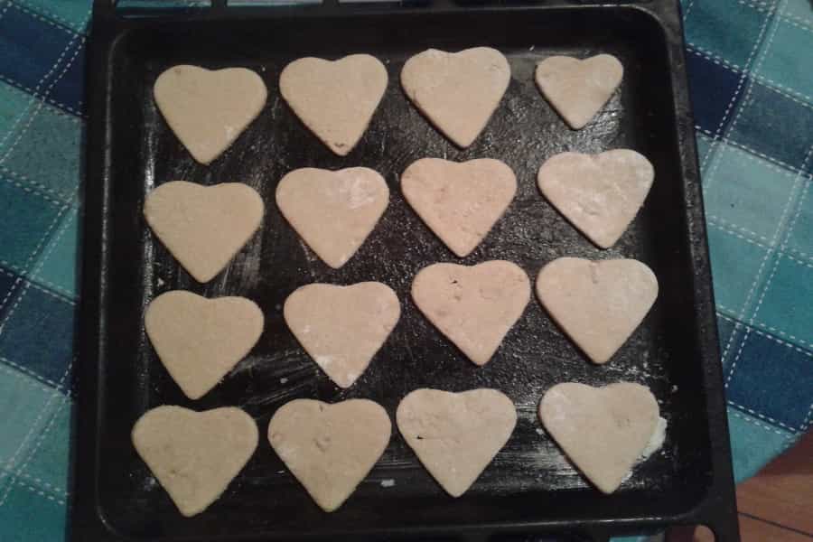 3 .El maní lo puedes moler con un uslero, para que los trozos no queden grandes. De todas maneras, debes amasar la mezcla, hasta que quede consistente. Lo anterior, servirá para estirar la masa y moldearla con cualquier diseño que más nos guste. En este caso, lo haremos con un molde de corazón.