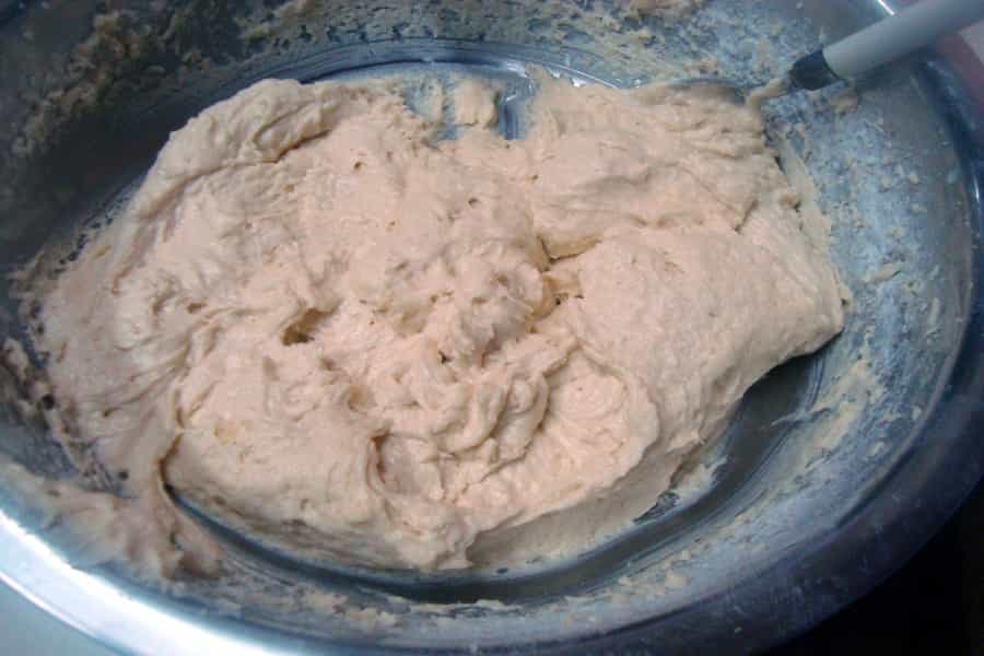 En un recipiente batir la mantequilla con 250 gramos de azúcar hasta que se forme una crema, sin dejar de batir incorporar 3 huevos uno a uno, cuando la mezcla este homogénea, añadir harina, polvos de hornear, vainilla y leche, incorporar bien.