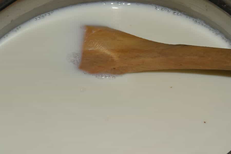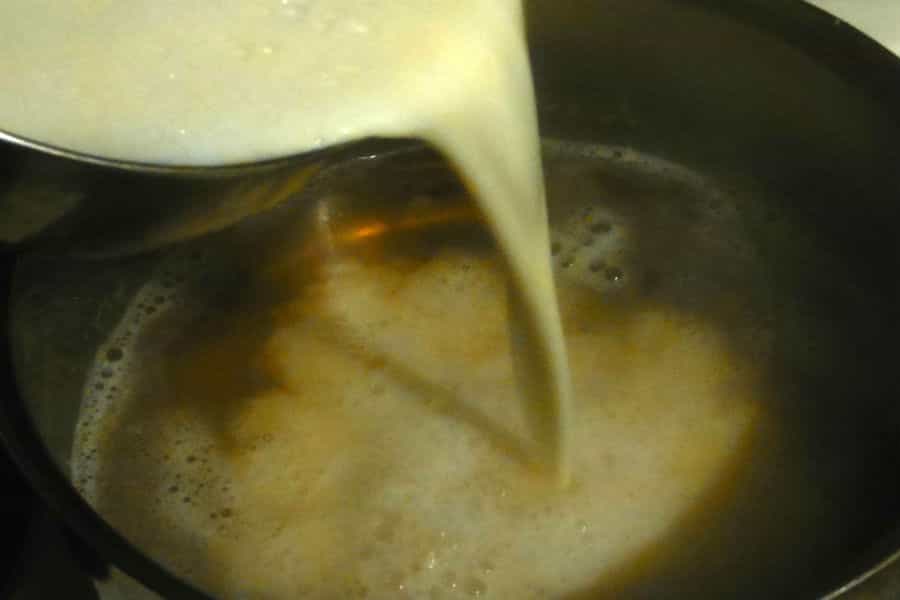 Mezcla la leche con la cerveza y cocina a fuego medio hasta que alcance una consistencia más espesa.