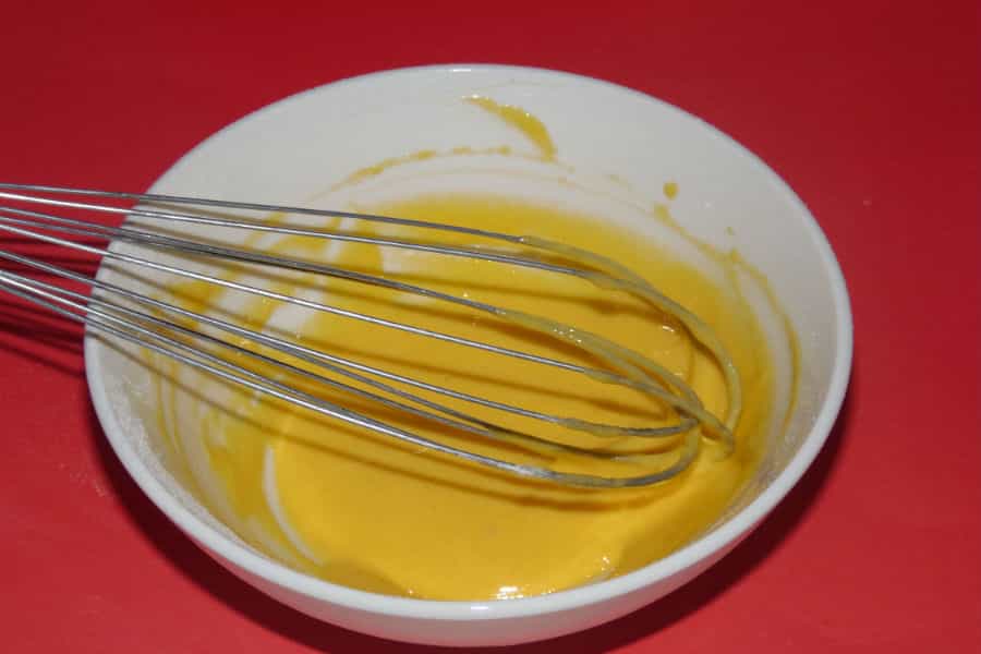 En un recipiente aparte, bate las yemas de huevo y mézclalas con la harina, hasta obtener una pasta homogénea. Luego mézclalo con la leche y ponlo a fuego medio hasta entibiar.