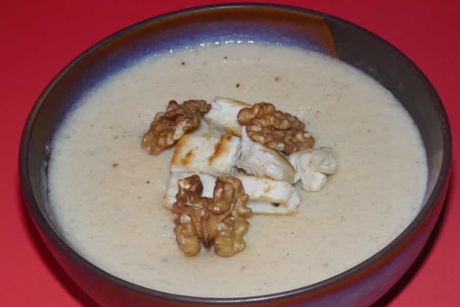 La segunda y la opción que escogí, es que tu crema de cerveza sea una preparación salada que puedes servir tibia. Lo puedes condimentar con sal, pimienta y nuez moscada a gusto y servir con crutones y nueces, sencillamente cautivamente.