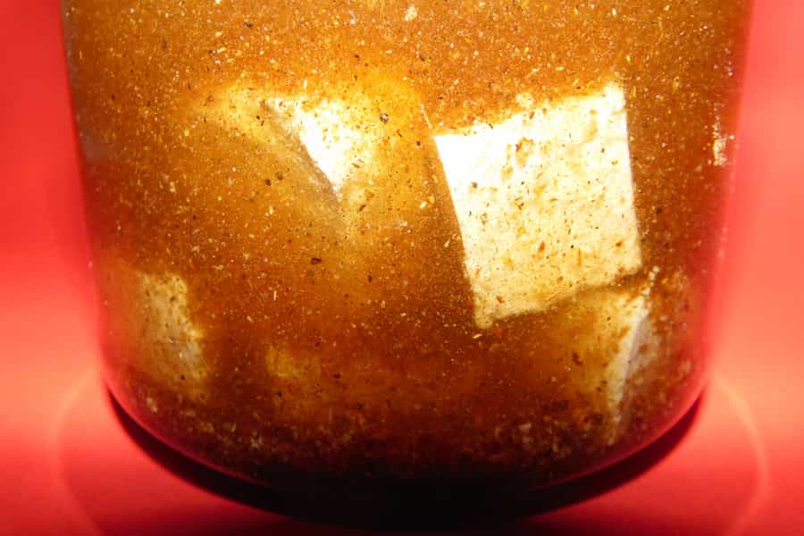 El tofu es una preparación que por lo general no tiene sabor propio, por cual, la tarea de agregar sabor, es un poco difícil para cocineros que no se han aventurado en la cocina vegana. También puedes variar los ingredientes para marinar. Por ejemplo, puedes usar aceite de oliva y romero si quieres hacer una preparación salada. También puede ser jugo de naranja y miel, si quieres preparar un delicioso postre. Lo importante es que una vez abierto el tofu y marinado, debes consumirlo antes de seis días, para que no pierda calidad en su sabor.