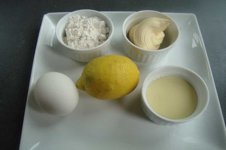 En un recipiente cernir maicena, harina y polvos de hornear. Reservar. Batir la margarina con 150 gramos de azúcar flor, agregar las yemas una a una, la leche condensada, el coñac y la ralladura de limón. Incorporar los ingredientes secos cernidos. Formar una masa lisa.