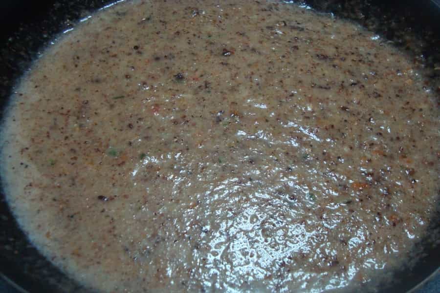 En una olla con 1 cucharada de aceite caliente, verter la salsa y cocinar durante 2 minutos, cuando comience a hervir agregar 1 taza del caldo de pollo, cocinar durante 5 minutos.