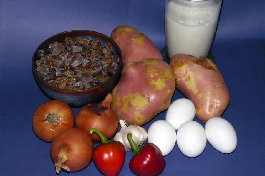 La mezcla que resulte la agregamos lentamente sobre la budinera con el pino de cochayuyo y las papas.