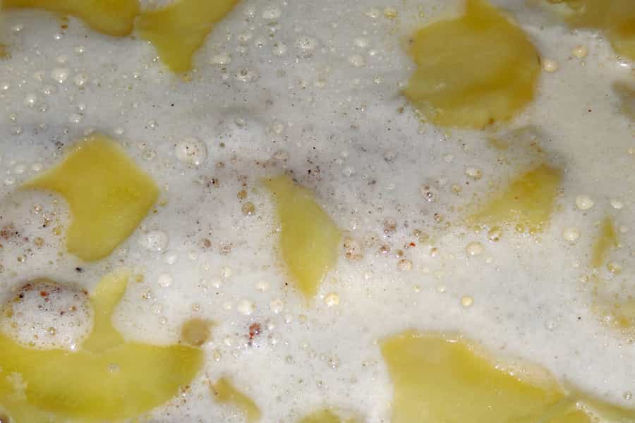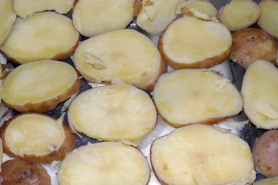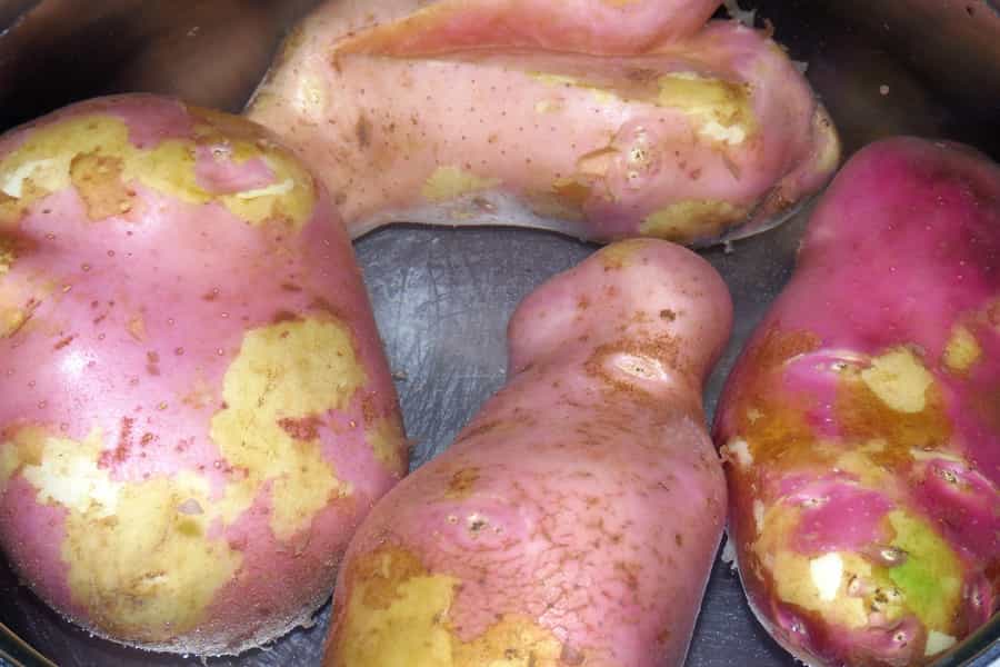 En otra olla cocino las papas con cascara hasta que estén cocidas.