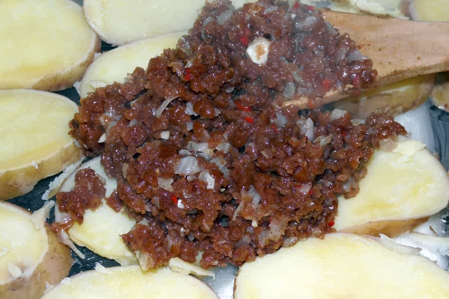 Si queremos intensificar el sabor de nuestra preparación podemos agregar una capa de queso, antes de cubrirlo totalmente con la segunda capa de papas. También podemos realizar esta acción cubriendo la superficie con queso para que se gratine cuando esté en el horno. Esta receta la podemos consumir en cualquier época del año, es sana y liviana en calorías.