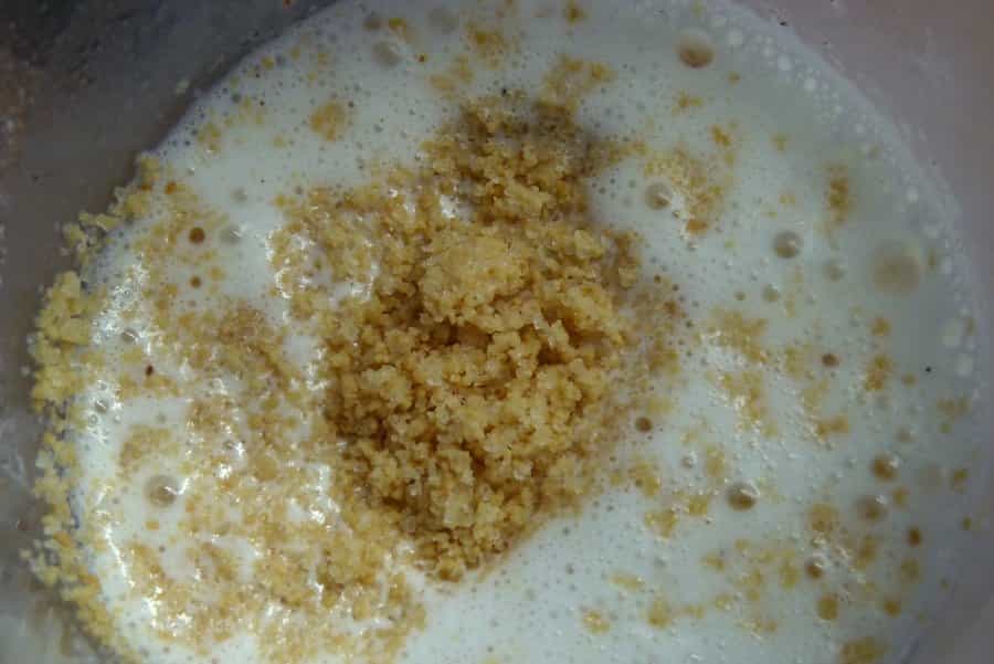 En un recipiente bate la leche junto a la maicena, añade la pasta de maní junto al aceite y continua batiendo. Por último agrega la harina hasta formar una mezcla homogénea. SI es necesario puedes agregar agua.
