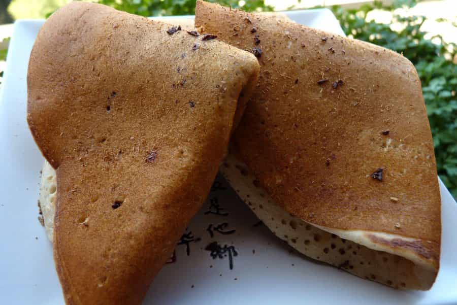 Cómo preparar Panqueques de maní rellenos con chocolate amargo