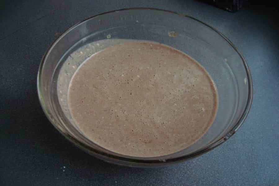 En un recipiente o en la juguera mezclar leche, chocolate en polvo, harina, huevos, margarina y sal, licuar hasta integrar bien. Tapar el batido y refrigerar por 1 hora.