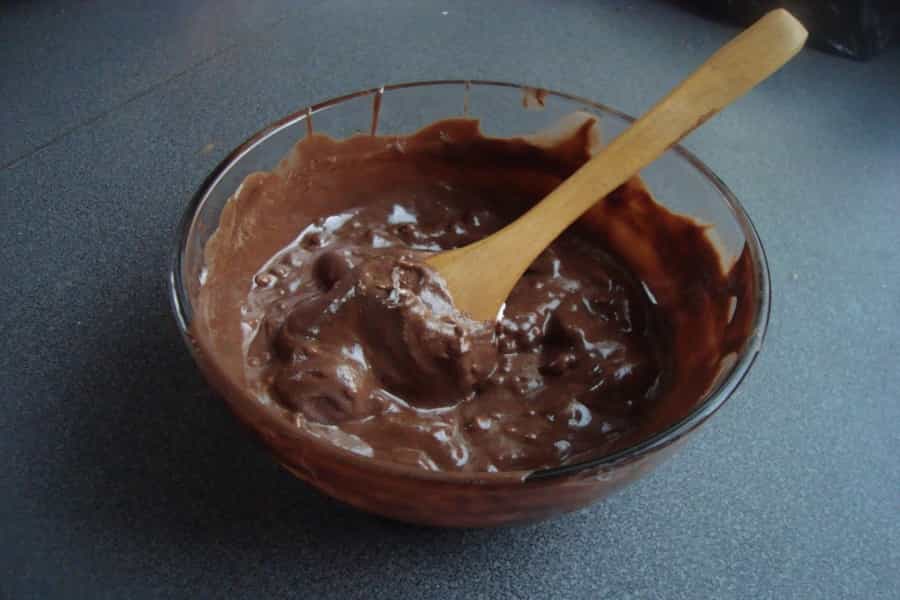 Preparar el relleno: derretir el chocolate en el microondas (30 segundos, sacar, revolver y volver a colocarlo otros 30 segundos), o a baño maría hasta que se derrita.