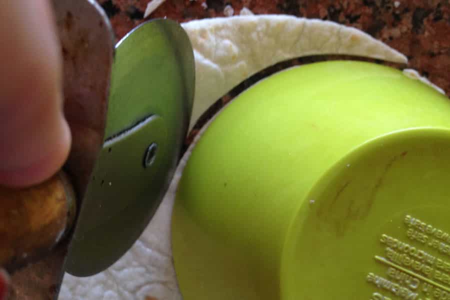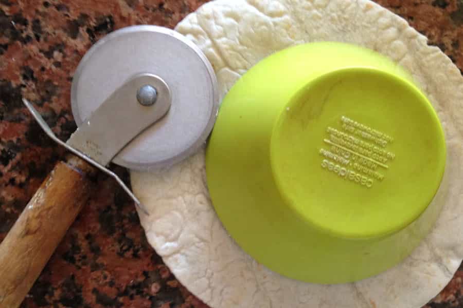 Yo usé un cortador de pizza, pero si tienes un molde redondo filudo puedes usarlo o también con un cuchillo.