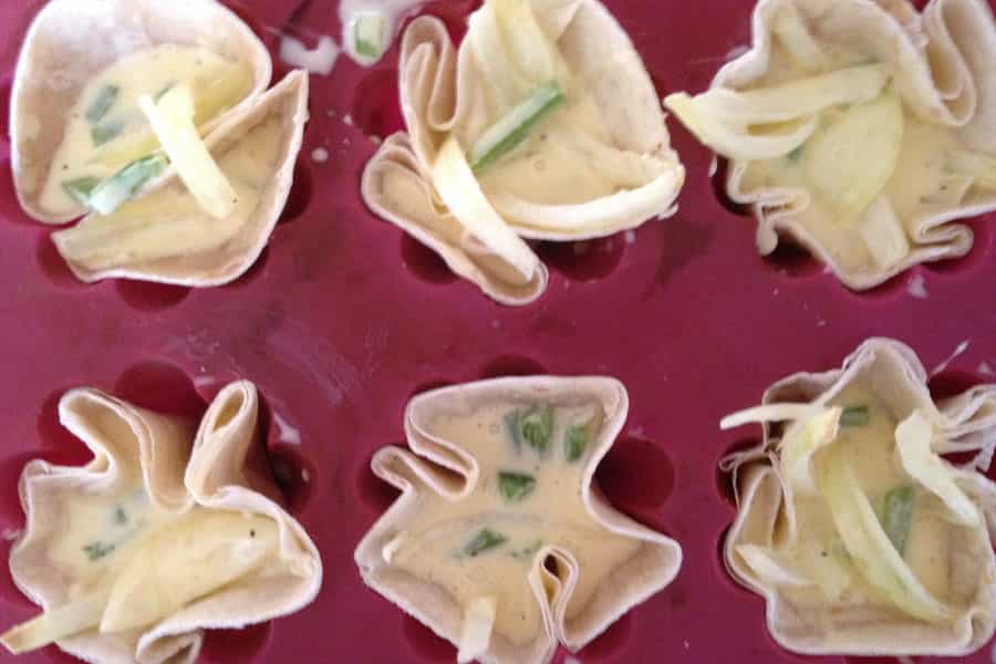 Agregas la mezcla, ojalá no los llenes mucho. El huevo en el
