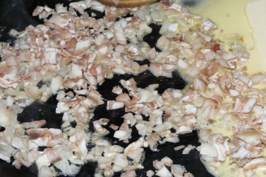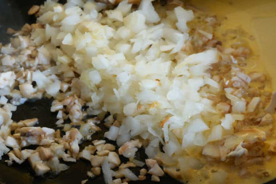 Luego salteamos los tallos junto con la cebolla. Esto pueden hacerlo en aceite o en mantequilla, es a gusto.