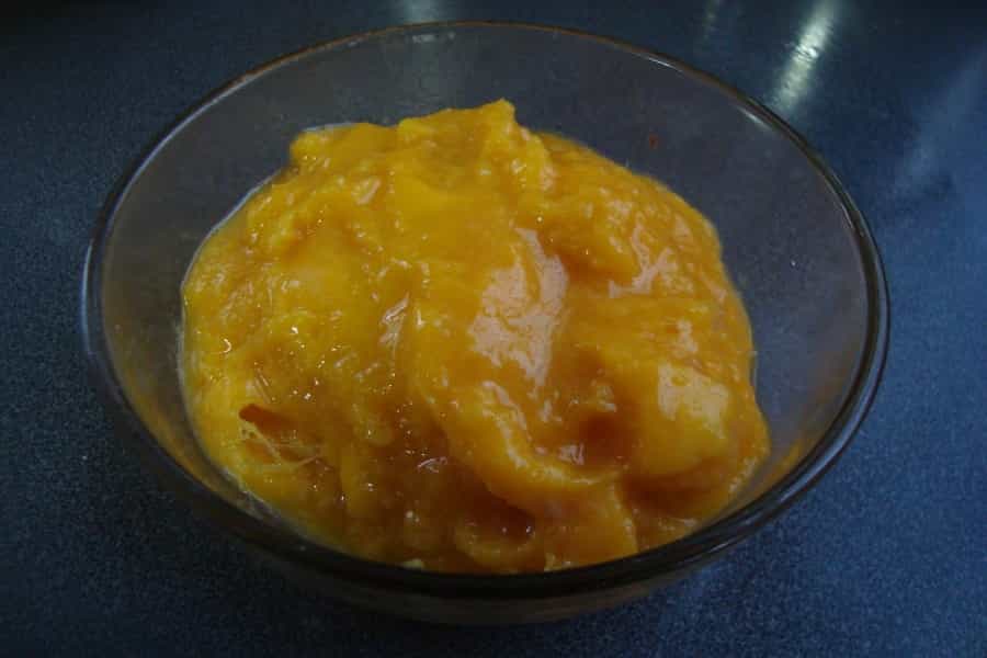 Pinchar la masa y rellenar con la crema de mango. Hornear en horno precalentado por 30 minutos o hasta que la masa este cocida y un poco dorada.