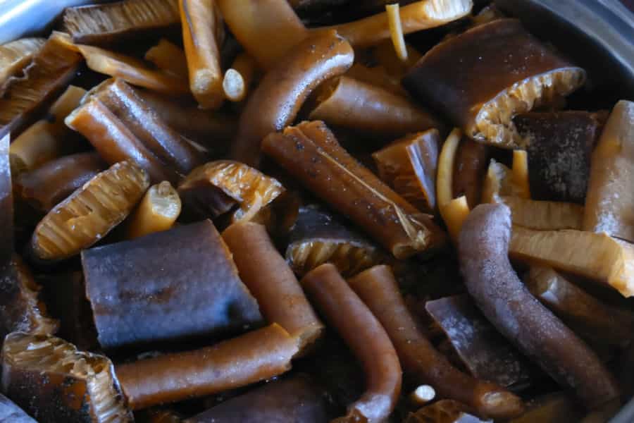 Picamos en cochayuyo y lo cocinamos en una olla hasta que quede blando.