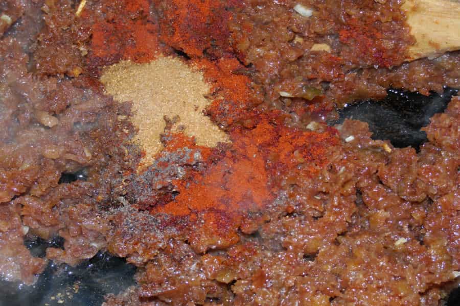 Luego agregamos condimentos a gusto. En mi caso utilicé pimentón paprika, nuez moscada y una pizca de pimienta. Revolvemos y dejamos enfriar.