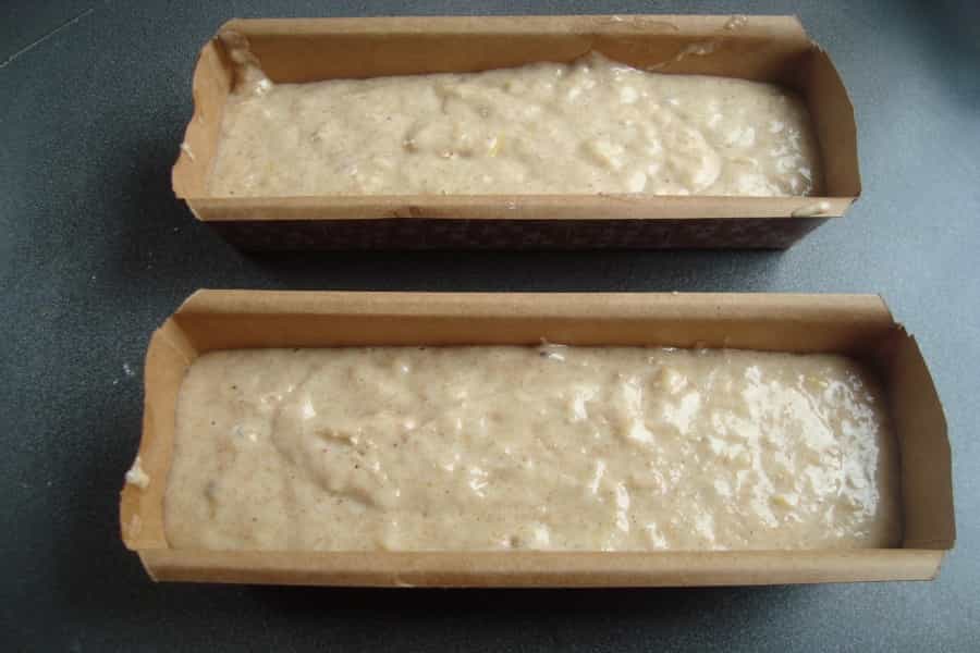 Hornear en horno precalentado por 30 a 45 minutos, o hasta que el pan de plátano vegano esté cocido y dorado. Para revisar la cocción, introducir un palito o brocheta, el pan estará listo cuando el palito salga seco. Retirar del horno y dejar enfriar.